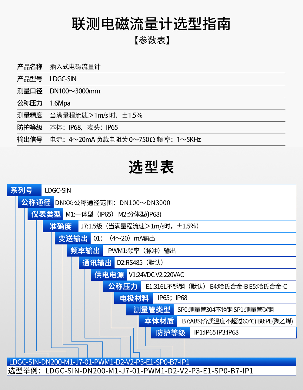 聯(lián)測儀表LDGC-SIN一體插入式大口徑電磁流量計污水廢水防腐