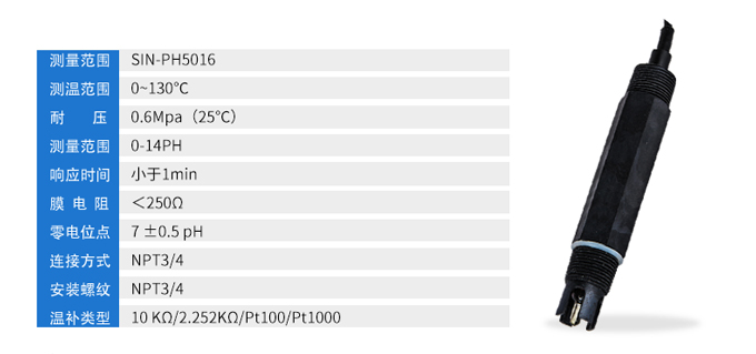 聯測SIN-pH5016 電極能耐130℃以上的高溫,并能耐強酸強堿侵蝕。廣泛應用于廢水處理和包括采礦冶煉、造紙、紙漿、紡織品、石油化工、半導體電子工業(yè)流程、生物技術下游工程等領域。