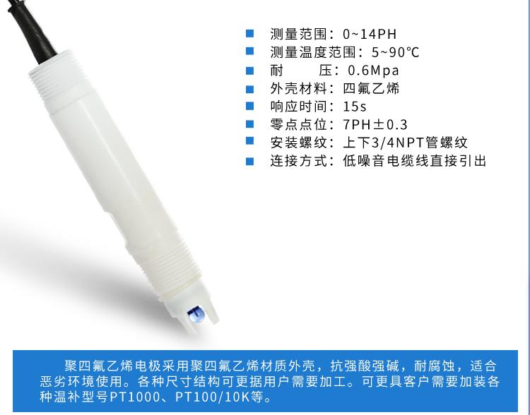 聯(lián)測(cè)SIN-5013A四氟電極應(yīng)用于紡織印染、工業(yè)廢水、自來(lái)水廠、污水處理廠、電鍍廢水等腐蝕性較強(qiáng)的介質(zhì)。