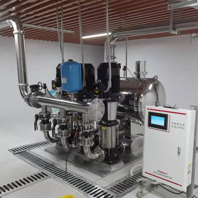 此次提升改造項目采用新型無負(fù)壓供水系統(tǒng)代替原有以水箱水池蓄水為基礎(chǔ)的二次供水系統(tǒng),對市政管網(wǎng)居民用水的水質(zhì)監(jiān)測提出了更高要求。