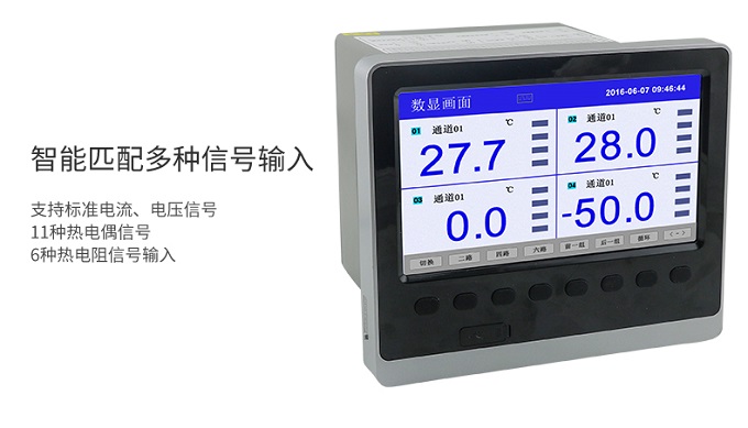 SIN-R6000C系列彩色無(wú)紙記錄儀48路多種輸入(可組態(tài)選擇輸入:標(biāo)準(zhǔn)電壓、標(biāo)準(zhǔn)電流、熱電偶、熱電阻、頻率、毫伏等)。
